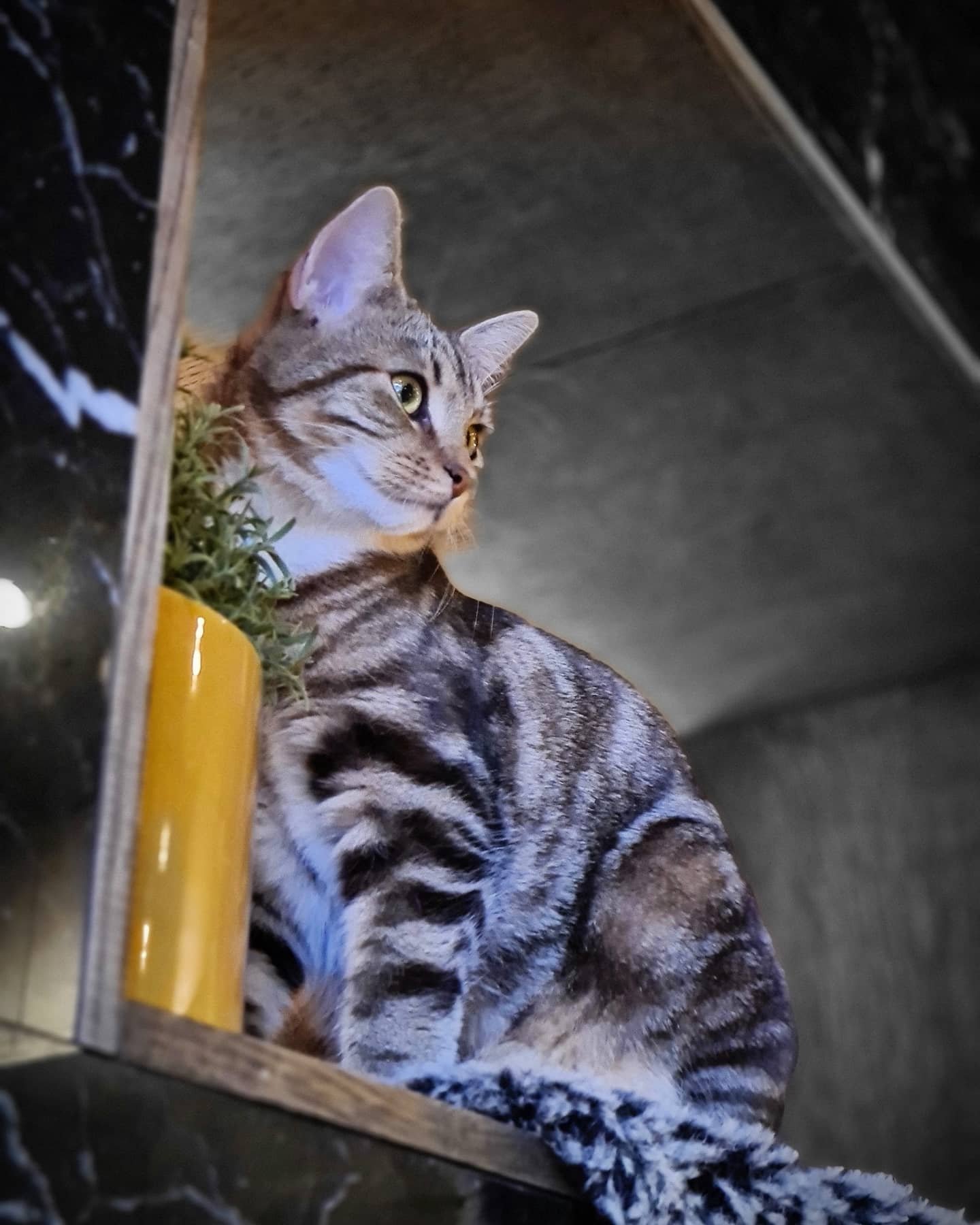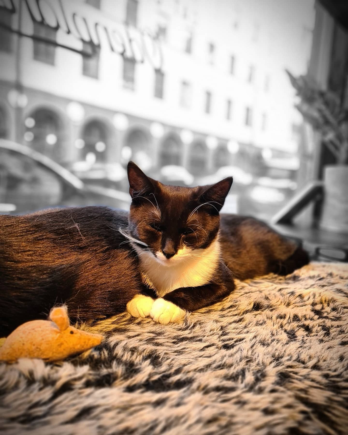 Jag är en äkta ”crazy catlady”. Katter ger mig ett lugn och lycka i själen. De har en harmonisk och starkt helande energi. När de kurrar avges en frekvens som sägs kunna hela benbrott och skador i muskler. Små fluffiga jordänglar är dom.